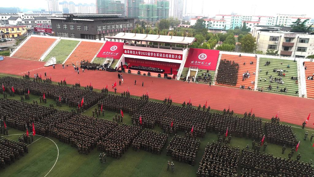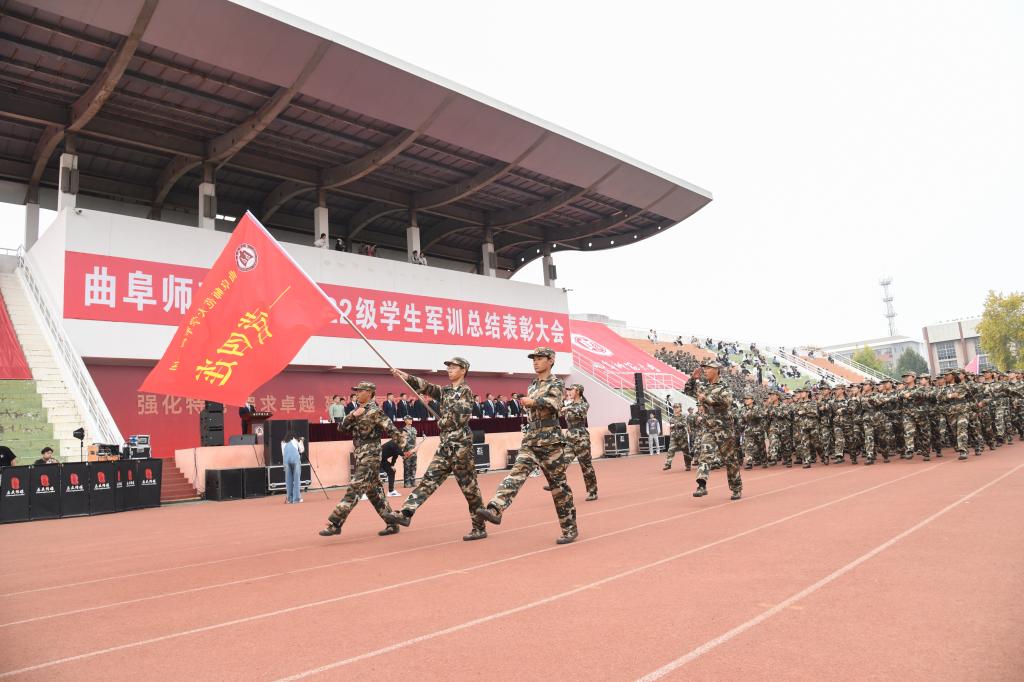 曲阜师大新闻中心讯(通讯员:贺靖平 李欣洋 摄影:刘萌 董少伟 姜曰水 刘扬帆 司娜) 10月16日,开云手机入口2022级学生军训总结表彰大会分别在曲阜、日照两校区隆重举行,2022级全体参训同学面对鲜艳的五星红旗,迈着白杨般挺拔的步伐,唱响了曲园最为振奋人心的嘹亮军歌,彰显出曲园学子坚定不移跟党走、立志建功新时代的大局情怀和使命担当。学校党委副书记卢国强,党委常委、副校长胡凡刚,党委常委、副校长纪洪涛出席大会。学校相关党政部门负责人、军训领导小组成员、军训团组成人员、各学院党委书记、党委副书记、2022级辅导员、军训教官,参加大会。大会分别由学生工作处处长、军训旅副旅长姜美颖,团委书记、军训旅副政委孔轶众主持。