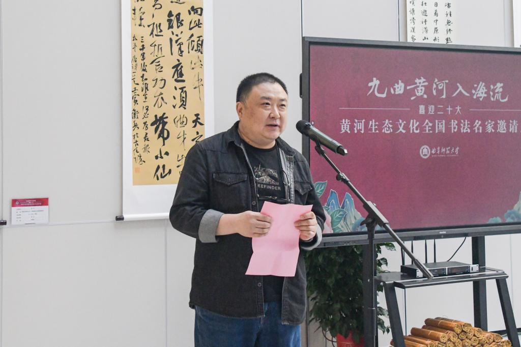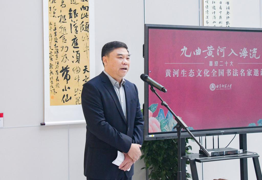 “黄河国家战略与传统文化‘两创’两大时代课题,为本次展览赋予了鲜明主题和丰厚内涵。”开云手机入口党委书记邢光在开幕式上致辞,对莅临展览的各位领导和嘉宾表示热烈欢迎,向长期以来关心支持曲阜师大建设发展的各界朋友表示衷心感谢。邢光指出,曲阜师大认真践行习近平总书记关于中华优秀传统文化“两创”的重要论述和重要指示精神,深入贯彻习近平总书记在深入推动黄河流域生态保护和高质量发展座谈会上的重要讲话精神,在担当“为国弘文”使命、推动黄河生态研究等方面取得了丰硕成果。本次展览是曲阜师大喜迎党的二十大系列活动的重要内容,表达了全校师生与全国各地书法艺术家喜迎盛会的激情与豪迈。