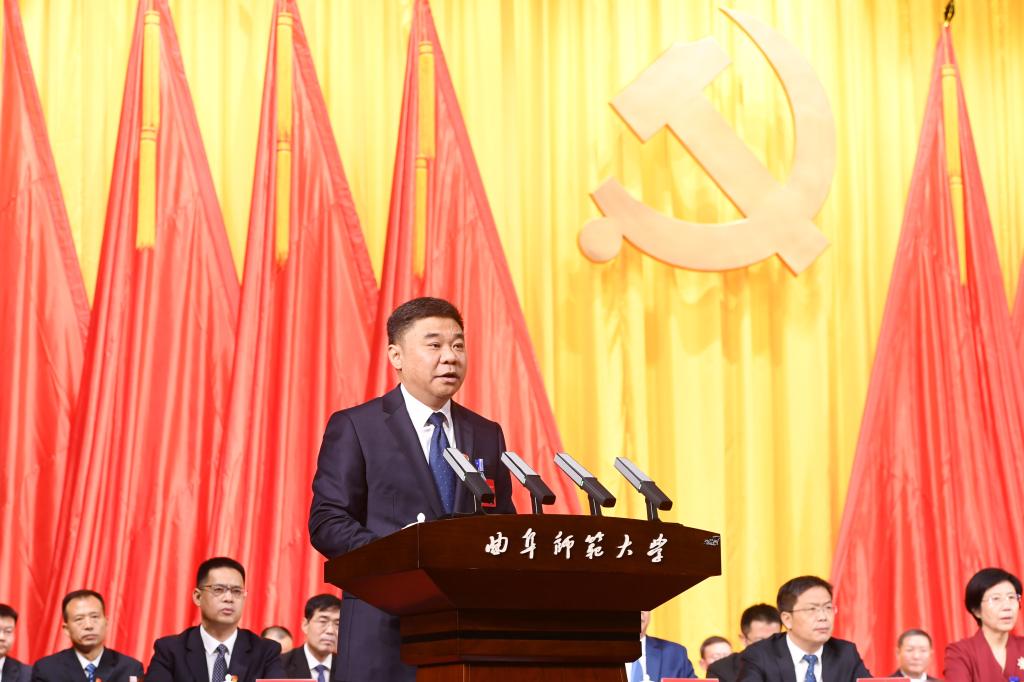 大会号召,全体党员干部和广大师生员工要在新一届党委的领导下,紧密团结在以习近平同志为核心的党中央周围,不忘初心、牢记使命,埋头苦干、勇毅前行,以实际行动迎接党的二十大胜利召开,为建设世界知名的高水平孔子家乡大学不懈奋斗。