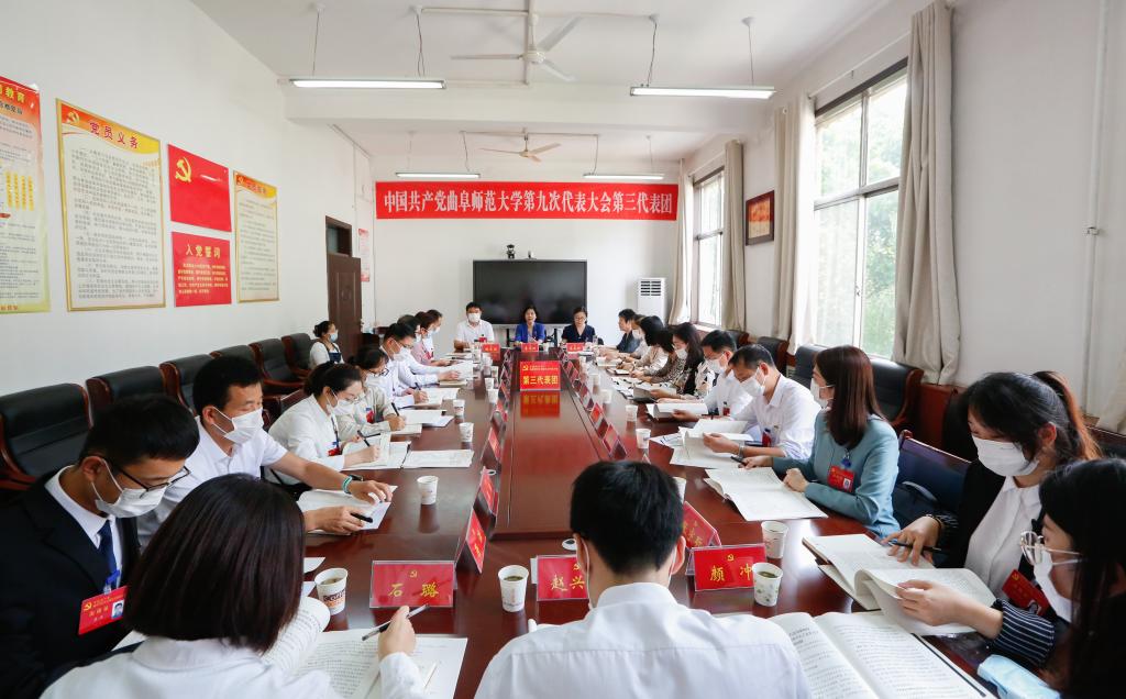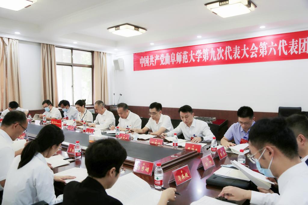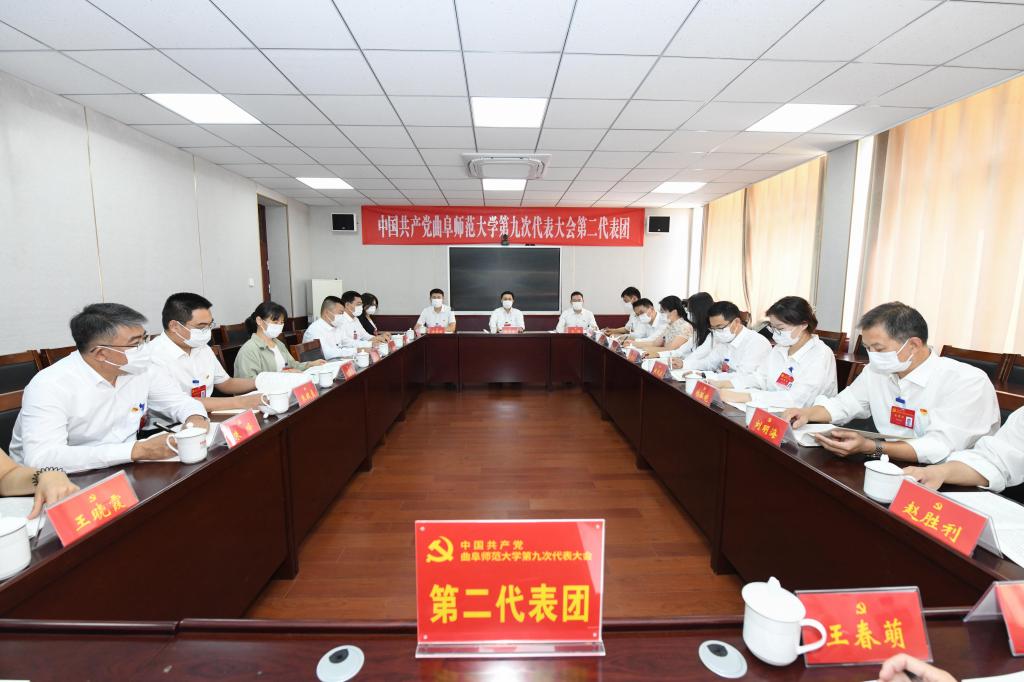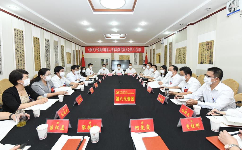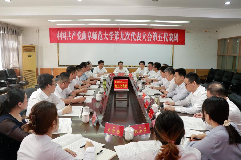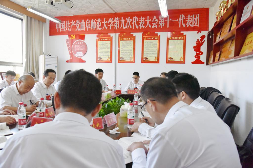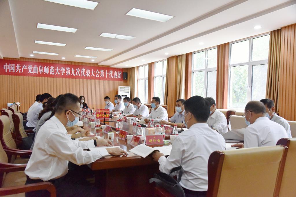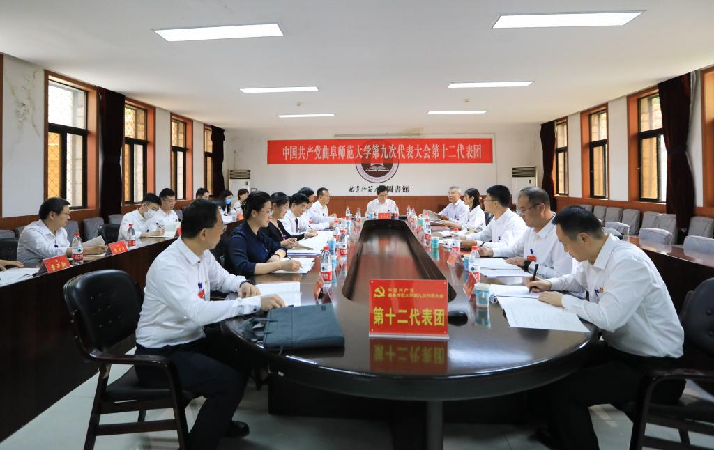 曲阜师大新闻中心讯 (记者:孙红梅  摄影: 刘萌 董少伟 姜曰水 孙红梅)9月19日下午,中国共产党开云手机入口第九次代表大会各代表团举行第一次会议,各代表团临时召集人主持了会议。