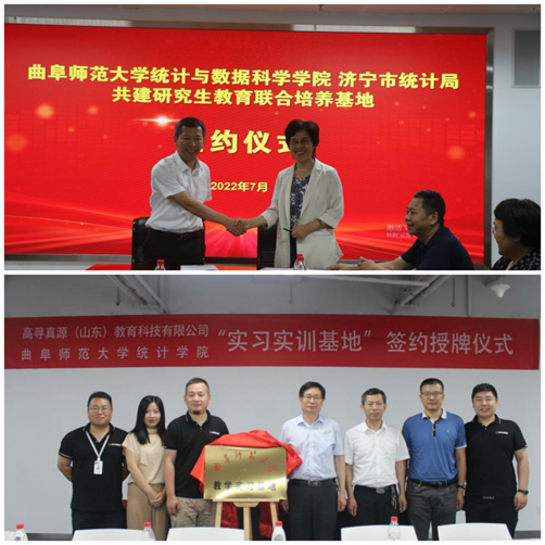 学院重视在学科交叉和服务地方方面的工作。在济宁市统计局建立山东省研究生实践基地,并与济宁市统计局建立长期合作关系,通过进一步加强与济宁市统计局的合作,做好服务地方的工作。与高寻真源(山东)教育科技有限公司建立合作关系,在高寻真源建立了实习基地,并通过招标,由高寻真源公司协助进行实验室建设,建立云平台,服务山东乃至全国。