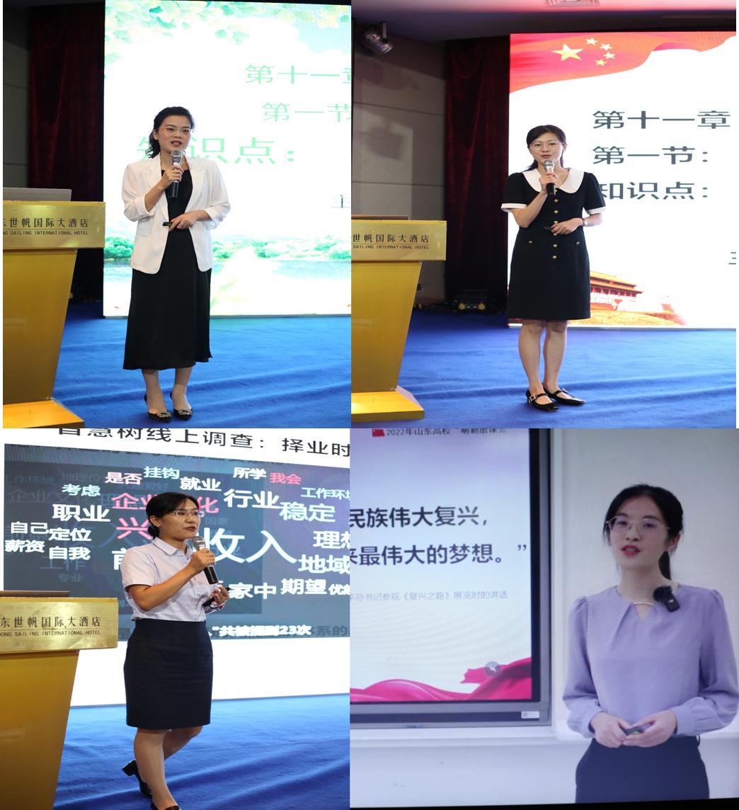 经过专家组评选,来自山东师范大学的张伟丽和山东建筑大学的宋春苗(本科组),来自日照职业技术学院的杜宝伟和菏泽医学专科学校的齐婷婷(高职组),成功取得全省思想政治理论课“萌新磨课总会”的参赛资格。