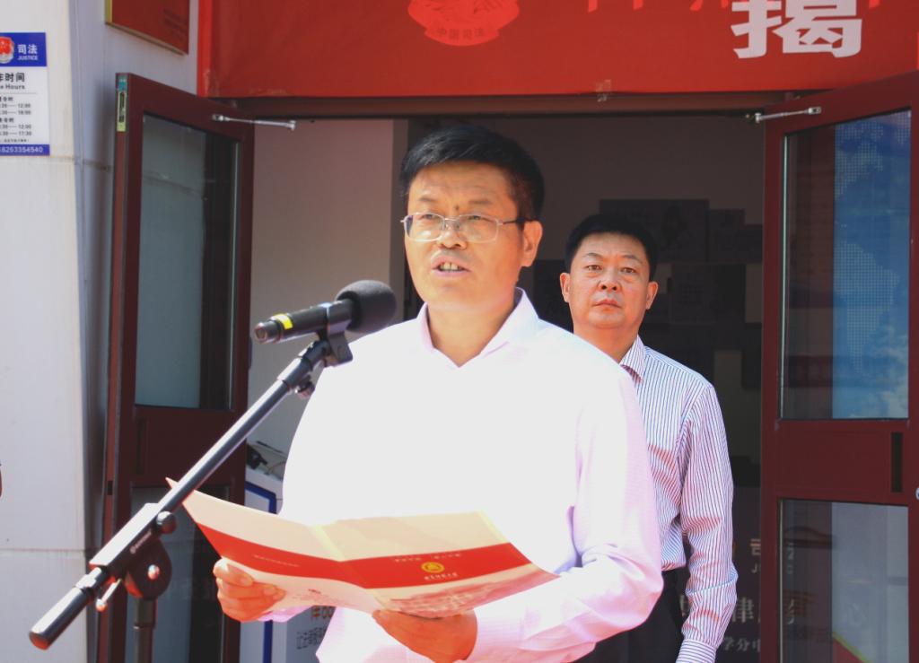 仪式上,卢国强和李刚为日照市公共法律服务中心开云手机入口分中心揭牌,司法局党组书记、局长贾秀玲和法学院院长张益刚为日照市法律援助中心开云手机入口法律援助工作站揭牌。