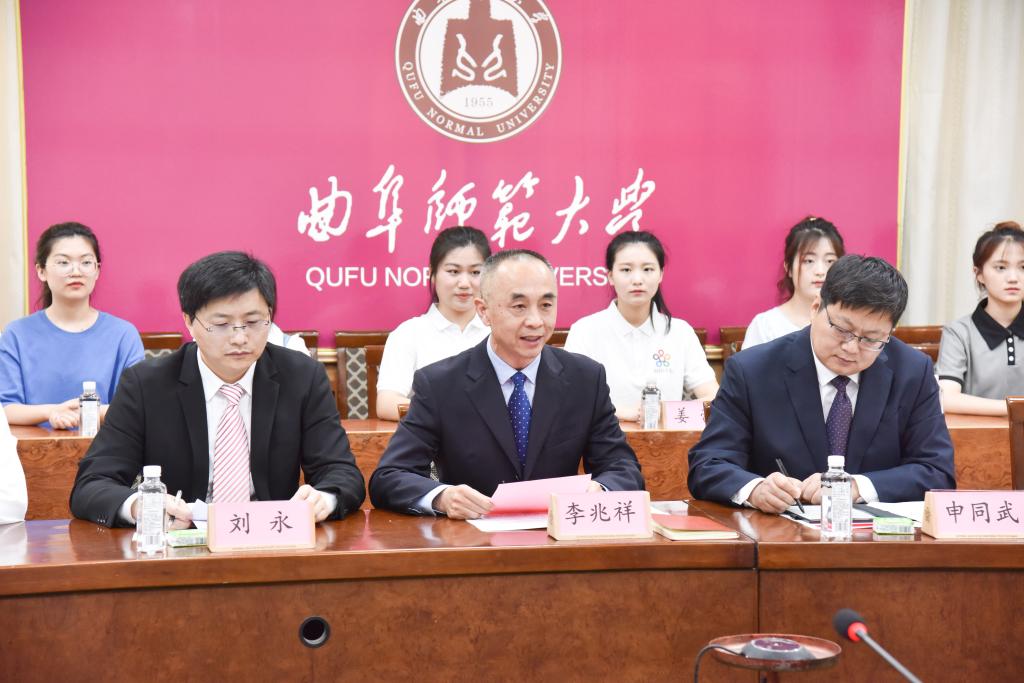 李兆祥代表学校对活动的举行表示祝贺,他表示,中日两国是一衣带水的友好邻邦,两国青少年交流频繁、互学互鉴,促进了各自成长进步,推动了两国文化交流进一步开展。足利大学历史悠久,曲阜师大传统文化特色鲜明,都注重优秀传统文化的传承与弘扬,希望通过精彩的才艺展示,加深彼此了解、相互增进友谊。