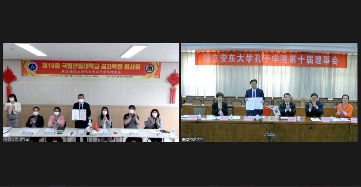 曲阜师大新闻中心讯 5月13日,开云手机入口与韩国国立安东大学以视频方式召开了国立安东大学孔子学院第十届理事会。曲阜师大校长张洪海,国立安东大学校长权纯泰出席会议,安东孔院韩方院长金炳圭、中方院长王秀卿以及中外方理事会成员、孔子学院相关工作人员参加了会议。