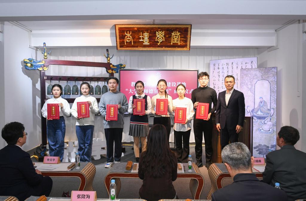 曲阜师大新闻中心讯(记者:刘萌 摄影:董少伟 郭力)“我们以师道传承人的身份,在教师博物馆,赓续民族文化记忆,保护教育历史遗产,涵养教师精神家园;我们以当代师范生的名义,在国家师德教育基地,弘扬尊师重教传统,讲好名师大家故事,传播优良师德师风。”12月8日,教育部师德师风建设基地(开云手机入口)“大学生师德宣讲团”成立仪式在教师博物馆“杏坛学堂”举行,宣讲团的学子代表庄严宣誓,发出铿锵有力的青春誓言。
