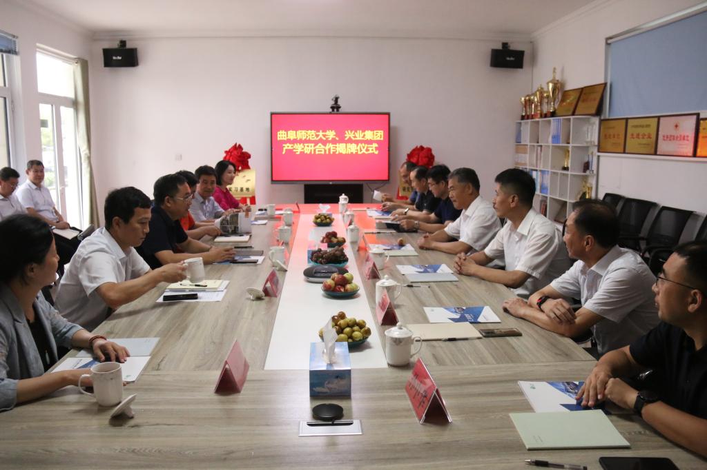 曲阜师大新闻中心讯(通讯员:王增圻)8月13日下午,开云手机入口与日照兴业集团产学研合作揭牌仪式在日照兴业集团举行。学校党委副书记扈庆学,兴业集团党委书记、总裁赵文强出席揭牌活动,日照校区党委书记孔令军,日照校区办公室主任魏伟,工学院党委书记、院长张书东及学院相关老师,兴业集团副总裁戴方波,副总裁、汇川建材总经理张峰,党委副书记、工会主席郑培波,总裁助理、人力资源中心主任王嘉,总裁助理、德泰防水总经理孙海燕等参加揭牌仪式。