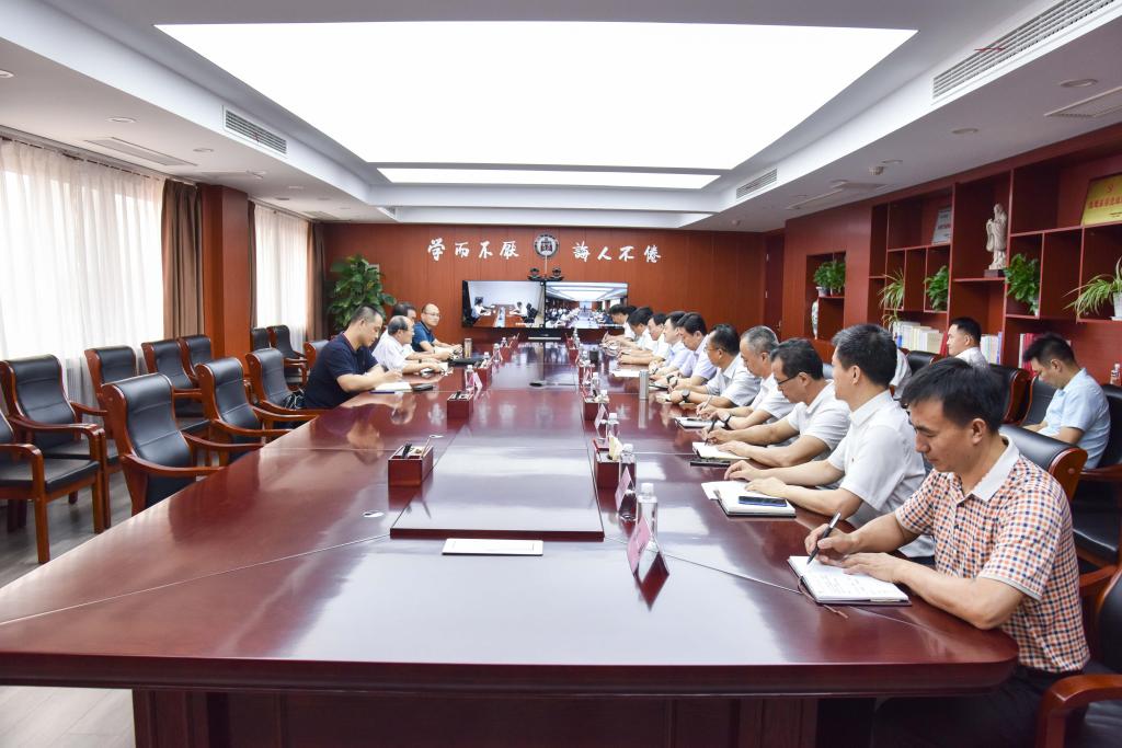 专题党课开始前,苏建华一行就学校党史学习教育开展情况举行了调研座谈,学校党史学习教育领导小组办公室成员参加座谈会。会上,戚万学从“提高政治站位,确保党史学习教育工作强起来”、“丰富学习方式,确保党史学习教育工作活起来”、“树立‘大格局’观念,开拓‘学史力行’新视野”三个方面,汇报了学校近期开展党史学习教育的经验做法和系列成果,并介绍了学校确保暑假期间党史学习教育不断线、教育质量不打折的主要部署。
