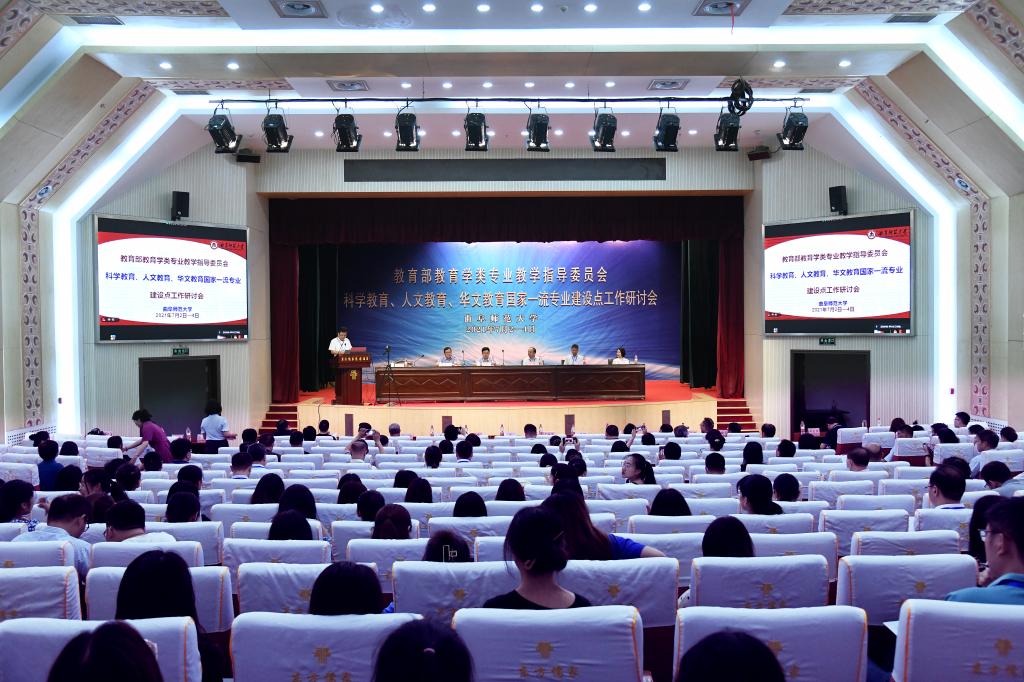 曲阜师大新闻中心讯 为进一步推动科学教育、人文教育、华文教育国家一流专业建设,加强不同高校之间的交流合作,共同提高人才培养质量,7月2日至4日,教育部教育学类专业教学指导委员会科学教育、人文教育、华文教育国家一流专业建设点工作研讨会在曲阜师大(教师博物馆)隆重召开。研讨会的主题为“挑战与应对:科学教育、人文教育、华文教育专业建设的思路与举措”,来自清华大学、南京大学、东北师范大学、辽宁师范大学、中央民族大学、湖北大学、江南大学、广西师范大学、安徽师范大学、杭州师范大学、暨南大学、华侨大学、长春师范大学、重庆师范大学、河北师范大学、首都师范大学、中南民族大学、鲁东大学、云南师范大学云南华文学院等高校的70多位专家学者线下共聚一堂,分享经验,为新时代科学教育、人文教育、华文教育国家一流专业建设献计献策,另有130多位专家学者线上观看直播。研讨会开幕式由开云手机入口教育学院院长唐爱民教授主持。