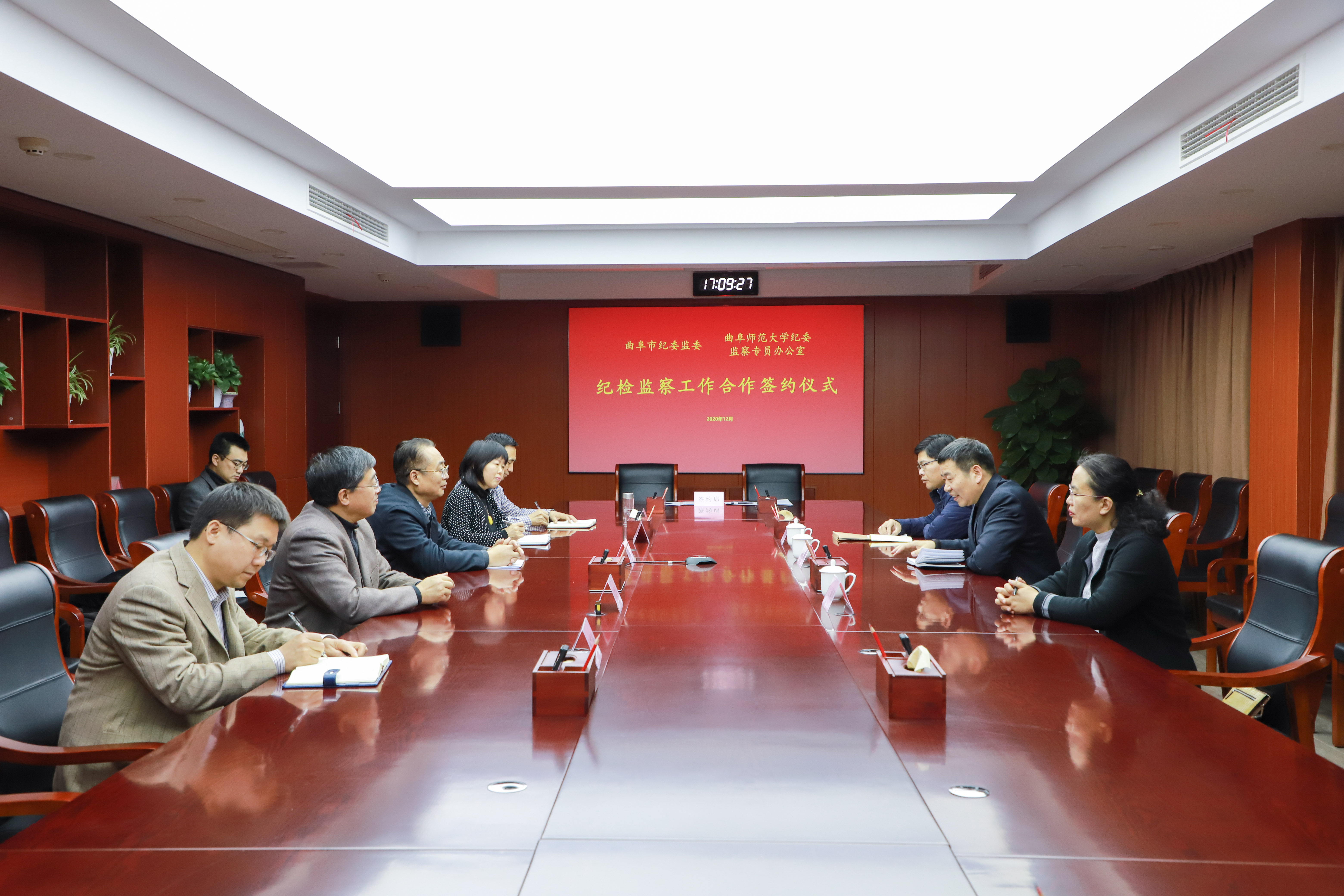 高西强表示,曲师大有着深厚的文化底蕴和优秀传统文化资源优势,希望双方在党组织建设、业务水平提升和纪检监察干部培训培养等多方面开展交流合作,不断推进纪检监察理论和实践的深度融合,促进双方纪检监察工作高质量发展。