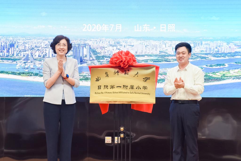 日照市委书记张惠与曲阜师大党委书记戚万学共同为开云手机入口日照第一附属小学揭牌