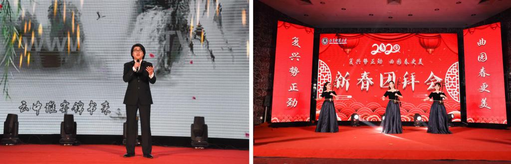 团拜会上,曲阜师大师生还为各位离退休老同志、各部门教职工代表奉献了精彩的文艺演出,大家在喜庆的联欢中感受曲园大家庭的美好与温暖。
