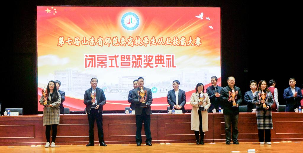 11月8至9日,第七届山东省师范类高校学生从业技能大赛决赛在鲁东大学举行,全省共有27所师范类高校的692名选手参加比赛。我校参赛学子23人获得一等奖、17人获得二等奖、11人获得三等奖,学校获团体银奖和优秀组织奖。与上届相比,我校参赛学子一等奖获奖率从41.4%提升到42.6%,总获奖率从84.7%提升到94%,再次谱写了“圣地曲园,教师摇篮”的凯歌。