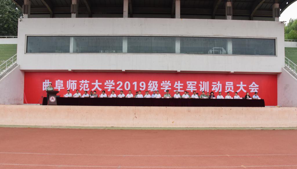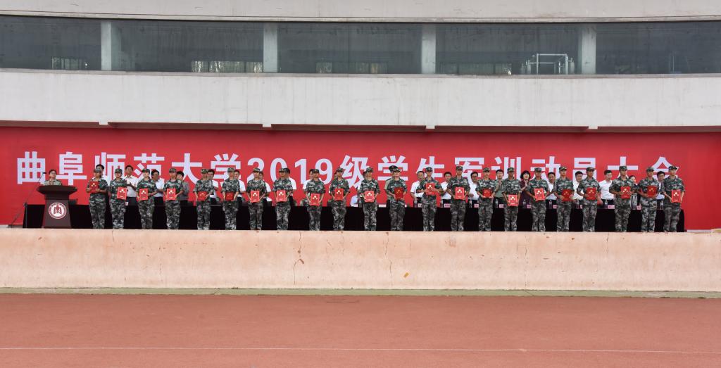 9月10日,我校分别于日照校区西操场、曲阜校区南操场举行了2019级学生军训动员大会。出席动员大会的领导有:武警济宁支队副参谋长储指南,日照武警支队副参谋长吴关,我校党委领导班子成员扈庆学、王继锁、杨冰、徐思生、张隆海。学校各相关部处及学院主要负责人在主席台前就座。动员大会由学生工作处(武装部)处(部)长姜美颖主持。