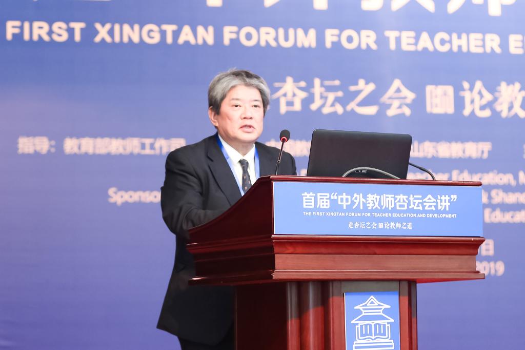 日本岩手大学副校长薮敏裕在会讲上致辞,表示此次的中外教师杏坛会讲对于探讨教师事业发展具有重要意义,对于本次会讲的筹办表示敬佩。他结合自身工作经历分析了关于日本教师培养当下存在的主要问题,他指出,在国际化发展的背景下,我们需要围绕教师教育“温故而知新”,探讨如何结合传统进行创新。他希望此次会讲能为教师教育的未来发展探索出新的路径。