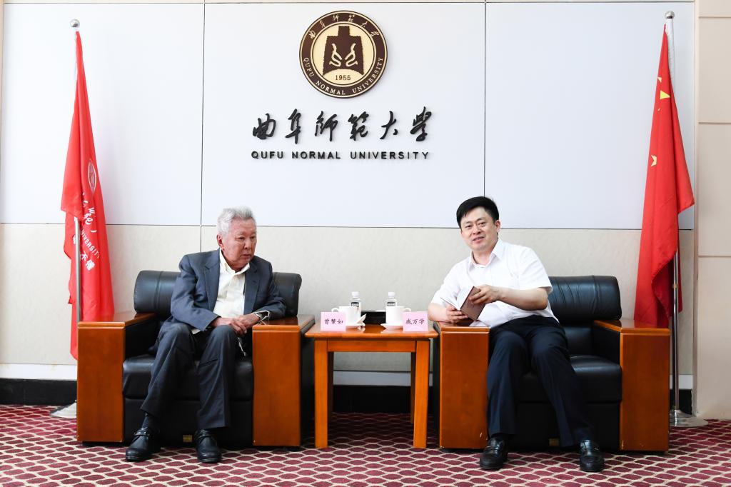 戚万学对曾繁如先生长期以来对我校的教学指导及捐资助学表示诚挚感谢,高度评价了曾繁如在促进中国传统文化特别是儒家文化的对外传播与交流方面所做出的贡献,重点介绍了我校谋划建设中国教师博物馆的情况,希望曾繁如今后进一步加强与我校的交流合作,提供更多的指导和支持,助推学校事业发展。