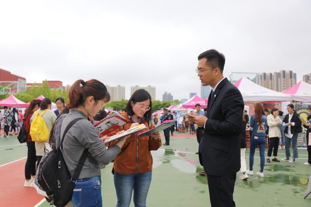 5月18日,我校2019年毕业生春季就业双选会在日照校区篮球场举行,来自全国的240余家用人单位参会,本次双选会参会单位共提供岗位需求8000余个,5000余名曲园学子及周边高校学生参加双选会