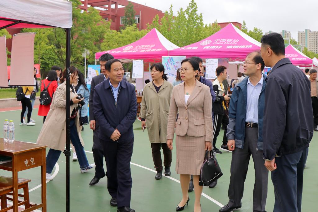 日照市委组织部副部长、市人力资源和社会保障局局长崔久成、副局长陈维江、校区管理办公室主任孔令军、学生工作处处长姜美颖等到招聘现场指导,并与参会企业负责人深入交流。