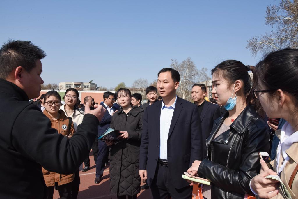 副校长辛杰深入活动现场视察指导,听取了学生工作处负责人关于此次供需见面会组织开展情况的汇报,并与来自济宁、烟台、日照、德州等地区的部分教体局和学校有关负责人进行了深入交流。