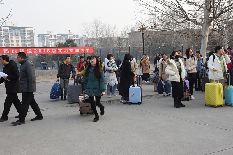 新学期伊始,2月24日一早,我校2019年上半年师范生实习支教活动正式启动。数十辆大巴车载着1373名曲园学子,分别奔赴济宁、临沂、日照等支教地点。学校副校长辛杰看望并欢送支教学生,日照管理办公室、教务处以及相关学院主要负责人参加了欢送活动。