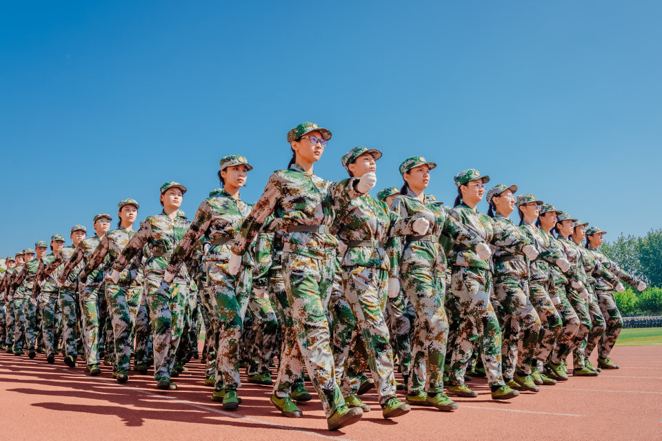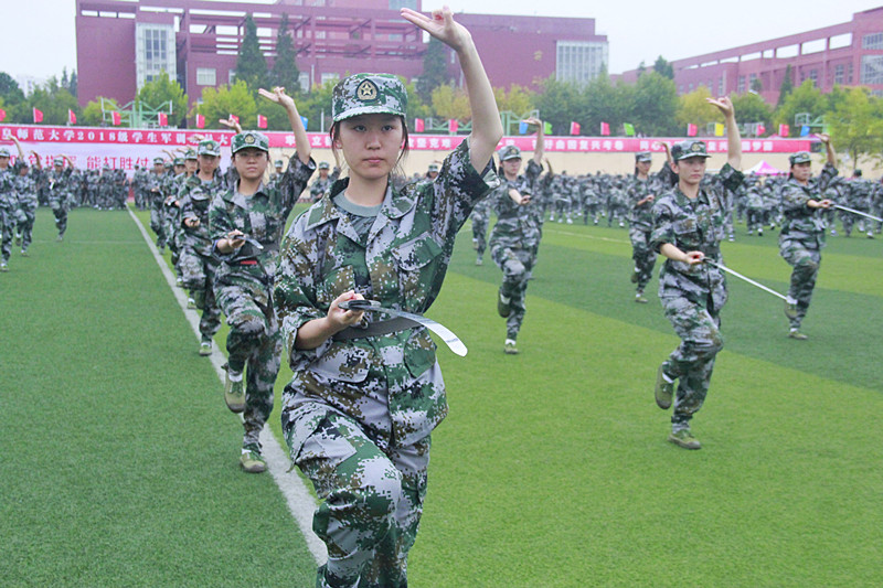 立正、跨立、稍息、停止间转法、齐步,这是军训标配!        (郭维勇   摄)