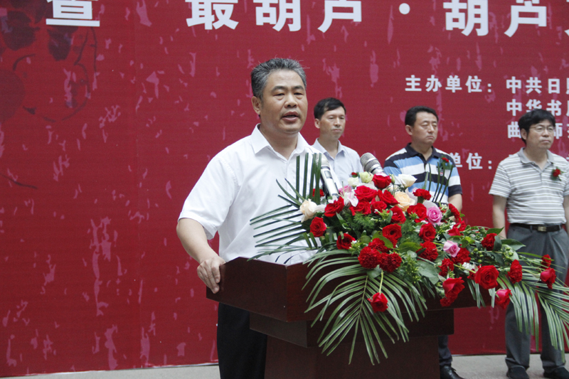 扈庆学在活动仪式上讲话,他首先代表学校和《葫芦文化丛书》编委会,向日照市委宣传部、中华书局、《光明日报》驻山东记者站、日照市社科联对活动给予的大力支持表示衷心的感谢。扈庆学在讲话中说,“最葫芦·葫芦文化丝路行”展演是响应中华文化走出去战略,面向海内外传播展示中华葫芦文化的重大文化工程。本次活动把《葫芦文化丛书》中的部分内容和日照的布艺葫芦、藤编葫芦、黑陶葫芦、写意葫芦,以“静”与“动”、“平面”与“立体”、“文字”与“图像”等形式呈现给大家,期盼对于打造日照地域特色文化、繁荣社会科学、实施“旅游富市”战略,起到锦上添花的作用。扈庆学表示,本次活动的举办,把校地社会科学、文化艺术界的专家学者紧紧地联系在了一起,从而形成了更大的凝聚力、提升了更大的影响力、展示了更大的行动力,为推动中华文化走出去、讲好葫芦故事提供了人才保障。