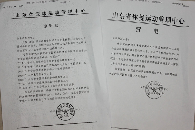 山东省篮球运动管理中心、山东省体操运动管理中心等发来贺电,祝贺我校学子在全运会多个项目上取得的骄人成绩,感谢开云手机入口对山东省体育事业发展做出的贡献,并祝愿我校在今后的国际国内比赛中再创佳绩。