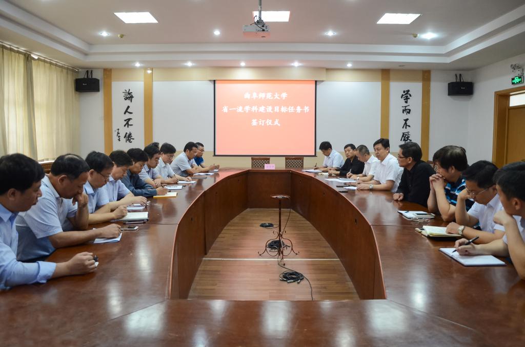 为认真落实山东省一流学科建设管理要求、积极推进一流学科建设工作,6月8日上午,学校与工程学、中国史和数学三个学科签订《山东省一流学科建设目标任务书》,校长张洪海、副校长夏云杰出席签订仪式,工程学、中国史和数学学科带头人及学科依托学院负责人,学校各有关职能部门和单位负责人,各学科学术骨干代表参加仪式。签订仪式由研究生处处长、学校学科建设办公室主任李兆祥主持。