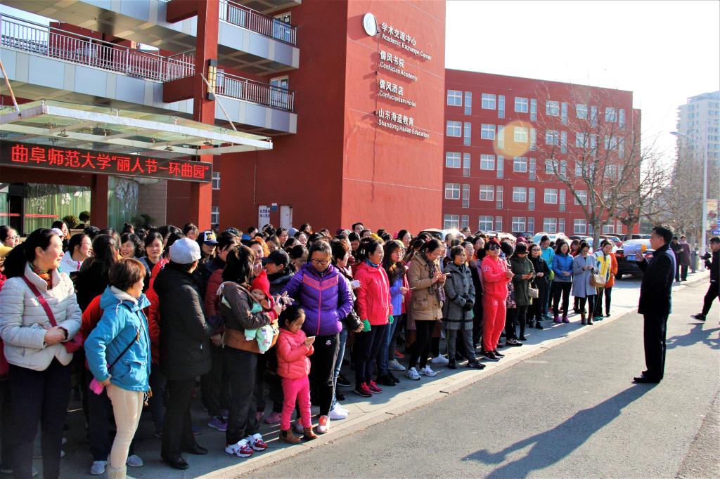 为迎接国际劳动妇女节的来临,让我校女教职工度过一个健康、快乐、充满意义的节日,3月8日下午,“丽人行-环曲园”第二届迷你马拉松徒步走活动在两校区同时举行。校长张洪海、副书记马东骅、副校长扈庆学及有关单位主要负责人、分工会主席出席了本次活动。此次活动由校工会、日照校区管理办公室、化学与化工学院、体育教学部等单位共同举办