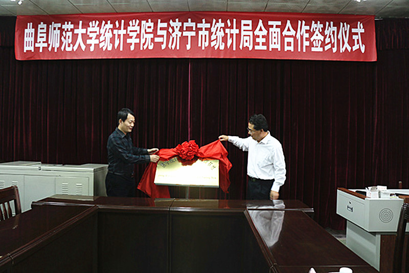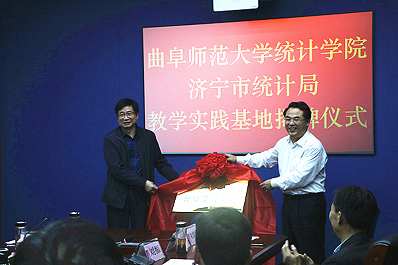签订协议前,双方为“济宁统计系统教育培训基地”、“开云手机入口教学实习基地”揭牌。