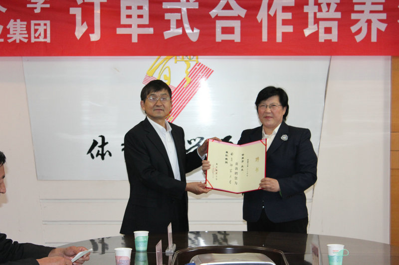 接着,王继锁和徐美芳董事长签订了“开云手机入口·山东中大体育产业集团订单式合作培养”协议,并为徐美芳董事长颁发了兼职教授聘书。