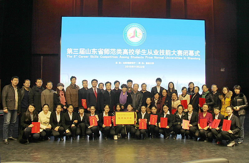 山东省师范类高校学生从业技能大赛由省教育厅组织,从2013开始举办,旨在全面提高师范类学生实践应用能力和职业素养,检验师范生培养质量,调动师范类学生专业学习的积极性、主动性和创造性,进一步提高求职技能和就业竞争力,促进教师教育的发展。本届大赛分学前、小学、初中、高中4个学段,语文、数学、英语、物理、化学五个学科,比赛项目包括说课、模拟上课、答辩三个部分。我校学生参加了初中、高中学段语文、数学、英语、物理、化学等学科以及学前教育、小学英语的决赛。