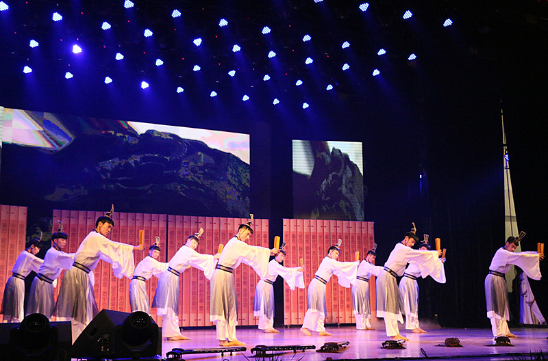 情景表演剧《儒风篇:杏坛春秋 孔子赞歌》掀开了展演的第一篇章。循着幽幽古乐,古代儒生缓缓入场,再现了孔子在杏坛设教,授六艺之学的场景。在60年的办学历程中,我校依托孔子故里独特的历史文化资源优势,在传承创新优秀传统文化方面形成了特色优势。学校从“学而不厌,诲人不倦”的教育思想中走来,从“儒风海韵,海纳百川”的气魄和战略中崛起,为教育事业和经济社会发展,源源不断地提供了强有力的人才支持和智力支持。