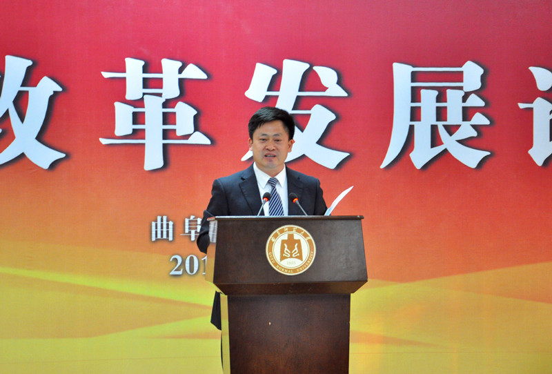 10月17日下午,我校主办的“大学改革发展论坛”隆重召开,30余所中外大学的书记、校长齐聚孔子家乡,在师范教育的源头,论道高等教育的改革发展,其中6所高校的书记、校长做了主旨发言。论坛由我校校长戚万学教授主持。