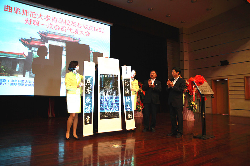 会上,荆兆勋与首任会长权锡鉴共同为校友会揭牌,青岛校友会赠给母校一艘做工精致的帆船模型,祝福母校一帆风顺。母校赠送校友会一副《先师孔子行教像》,希望在青校友秉承曲园优良传统,发扬光大曲园精神。