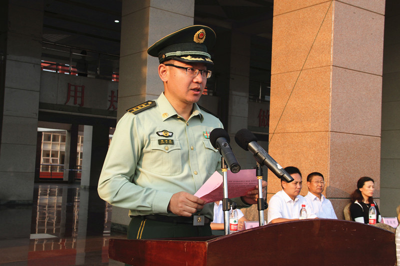 典礼上,中国人民解放军72395部队副部队长王支福日照边防检查站党委书记、政委张金鹏代表承训部队讲话,对全体帮训部队、承训官兵和全体参训新生提出了要求。