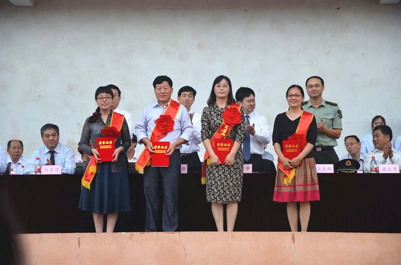 副校长马东骅、康淑敏宣读了2014-2015学年获省级以上奖励部分人员和单位名单。学校领导为获得师德标兵和从教30周年的老师颁发荣誉证书。