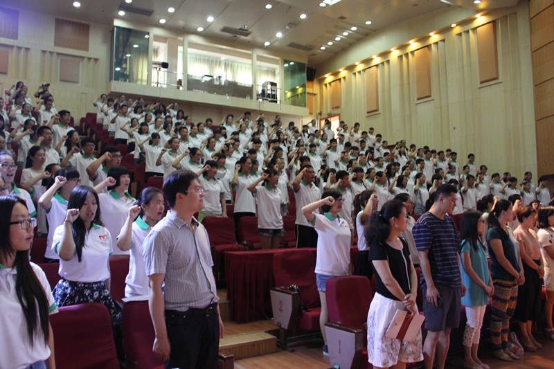 7月13日下午,2015年“小草学堂”暑期支教志愿者出征仪式举行。副校长马东骅为志愿者们授旗,共青团日照市委书记袁利强出席仪式并讲话。日照校区学生工作办公室、共青团日照市委相关负责同志,258名“小草学堂”志愿者参加了活动。