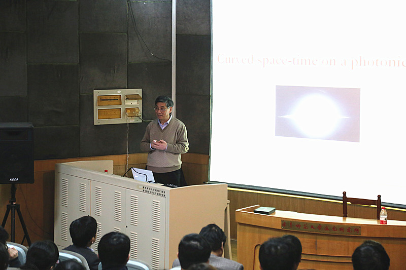 报告中,祝院士详细地介绍了其课题组如何在光子芯片上,用简单的实验,精确而漂亮地演绎了爱因斯坦广义相对论所描述的光线弯曲现象。祝院士用生动的语言将高深的理论讲得通俗易懂,使在场师生受益匪浅。报告结束后祝院士对在场师生提出的有关问题进行了一一解答,并语重心长地鼓励大家在科研道路上不怕挫折、积极进取、敢于创新和追求卓越。祝院士对待科学问题一丝不苟、谦虚谨慎的治学态度也使在场师生深受教益。