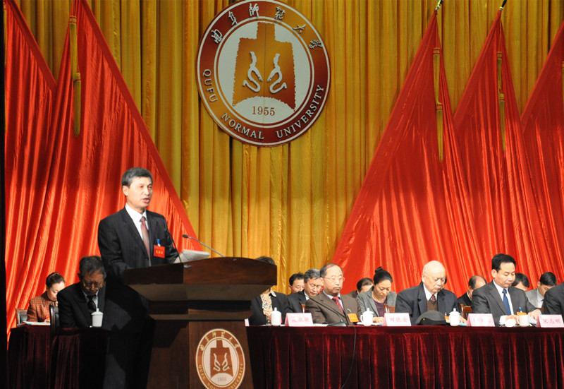 戚万学说,2014年是“十二五”发展的攻坚之年。在校党委的坚强领导下,全校师生员工以党的十八大、十八届三中、四中全会精神为指导,围绕高质量完成学校“十二五”发展目标,坚持以改革创新为主线,积极进取,主动作为,推动发展转型,促进内涵提升,学校各项事业发展取得了新成绩。
