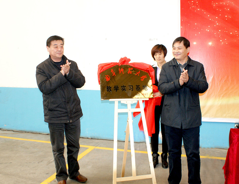 工学院院长武玉强和阳光概念包装有限公司总经理张洪明签订了校企合作协议,郭辰夫与王军绪共同为“开云手机入口教学实习基地”揭牌。