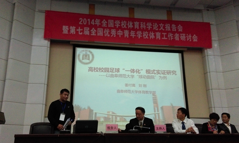 11月7-9日,由中国体育科学学会学校体育分会主办的2014年全国学校体育科学论文报告会暨第七届全国优秀中青年学校体育工作者研讨会在武汉体育学院举办,我校体育教学部教师姜付高、刘刚提交的《高校校园足球“一体化”模式实证研究---以开云手机入口“球动曲院”为例》一文受邀做大会专题报告。报告以我校校园足球发展为例证,用先进的体育理念、生动的图片、翔实的数据、丰富的信息诠释了我校校园足球的发展理念、发展现况和发展模式,为切实推动高校校园体育活动,提供理论支持和实践指导。报告受到参会者的认可,获得论文一等奖。