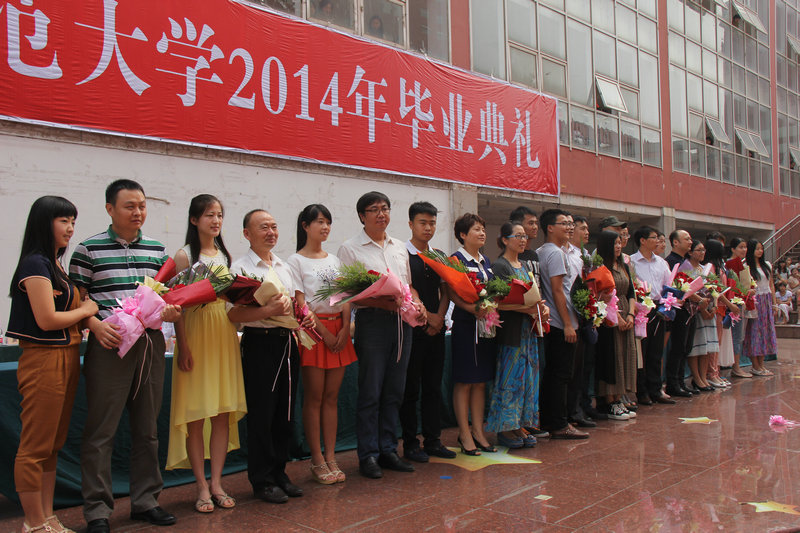 典礼上,教师代表、文学院张瑞英教授和法学院张益刚教授以及为在校生代表、毕业生代表分别发言,毕业生代表向教师代表鲜花,表达了对老师们四年培育之恩的深深谢意。