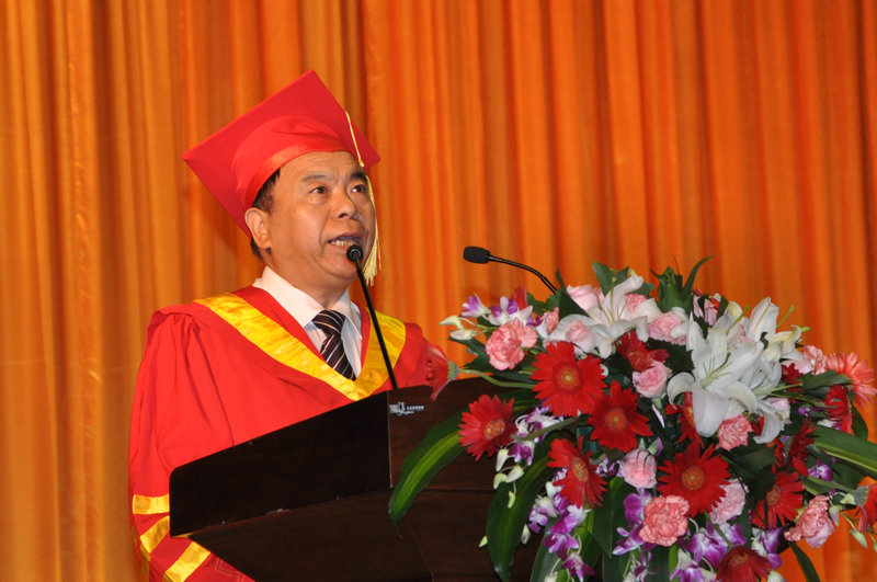 校长傅永聚在典礼上讲话,代表学校对2014届毕业生在校期间所取得的成绩予以充分肯定,对大家圆满完成学业,顺利毕业表示祝贺。他告诫大家在走上社会之后,要坚持勤学、修德、明辨、笃实的作风,在各自的岗位上创造曲园人新的辉煌。傅永聚深情地说,母校是写满记忆的地方,是值得每位同学铭记的人生港湾,希望毕业生们常回家看看。