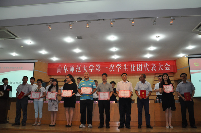 社团指导老师王华、校学生会主席张志远分别致辞,在主席台就座的领导为指导老师代表颁发了聘书。