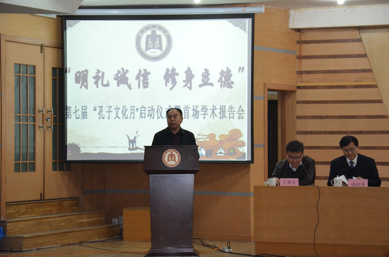 3月26日晚,由校团委和历史文化学院联合主办的“明礼诚信,修身立德”第七届“孔子文化月”启动仪式暨首场学术报告会在我校孔子会堂举行。校长傅永聚出席仪式并讲话。学生工作处、校团委、研究生处以及历史文化学院负责人参加活动。