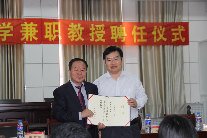 10月11日,上海外国语大学东方语学院博士生导师金基石教授受聘我校兼职教授仪式暨学术报告会在日照校区举行。校区管委会主任助理、管理办公室主任池福安代表学校出席聘任仪式并为金基石教授颁发聘书。翻译学院负责人及翻译学院师生代表参加活动。