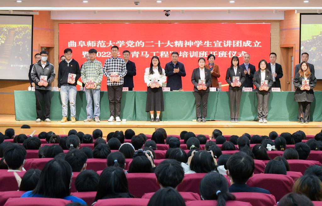 李志红在动员讲话时指出,成立党的二十大精神学生宣讲团、实施“青年马克思主义者”培养工程,是推动全校学生自觉以习近平新时代中国特色社会主义思想武装头脑、指导实践的重要举措。宣讲团要结合学生实际、运用学生话语、深入浅出宣讲,推进党的二十大精神学习走深、走心、走实。青马学员要发挥榜样典型和示范引领作用,先学一步、以身作则、以点带面、学深悟透、抓好落实。广大曲园学子要充分认识党的二十大的重要意义,深刻领会党的二十大精神的丰富内涵,切实用党的二十大精神统一思想、统一意志、统一行动;要全面掀起党的二十大精神学习热潮,用好各类宣讲平台,提高理论武装实效;要把党的二十大精神贯彻落实到实际行动中,践行“强国有我,请党放心”誓言,为建设世界知名的高水平孔子家乡大学贡献青春力量。