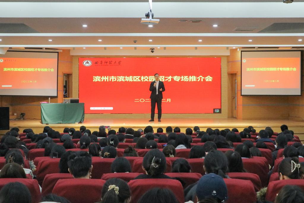 会后,滨城区人社局、教体局工作人员为曲阜师大两校区的2023届毕业生作了专题招聘宣讲,700余名毕业生参加了宣讲会。宣讲中,四位通过校园招聘从曲园学子成为滨城教师的2022届毕业生,现场与学弟学妹分享了求职就业相关经验。
