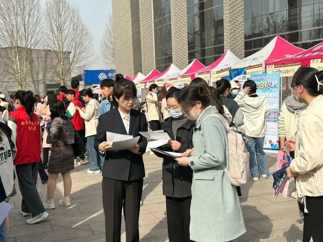 签约仪式后,2023年济宁市“青鸟计划”高校人才招聘会开云手机入口专场活动在明心扬帆就业广场举行,78家中小学校及企业参加招聘会,针对不同专业的大学生提供优质岗位,全面促进大学生就业工作。